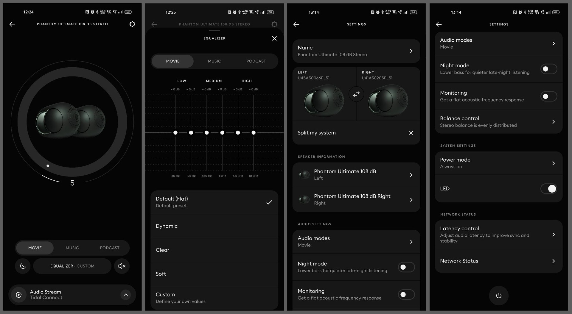 With the latest DevialetOS (OS3), the operating system now provides three dedicated listening modes: Movie, Music, and Podcast, each tuned for a specific type of content. There is also a fully configurable six-band EQ, alongside Bass Reducer and Loudness options, allowing for fine adjustment of the speaker’s response to match both taste and room. Streaming has been further integrated directly into the speaker software, making it easier than ever to access content from modern platforms without extra boxes or cables. All of these changes underline Devialet’s commitment to evolving not just the hardware, but the entire experience of living with Phantom Ultimate day to day.