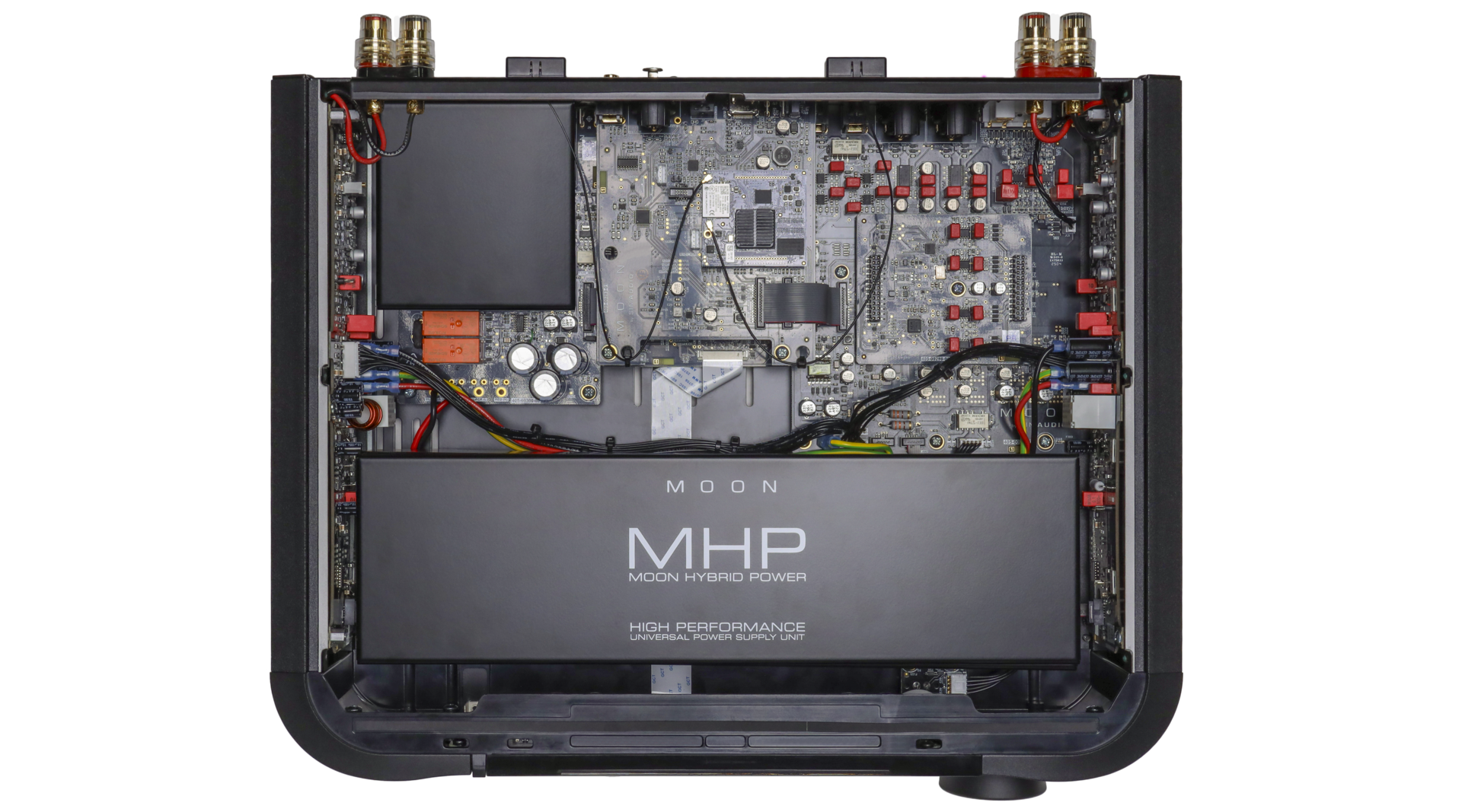 The third stage of the MHP operates as a linear voltage regulation section. This stage delivers clean, regulated DC voltage and provides independent regulation for each functional subsection of the MOON 371, including the power amplifier, analog stages, digital processing, streaming module, and phono stage. This separation minimizes cross-contamination between sections and maintains a low noise operating environment throughout the unit.